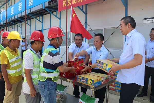 揭牌儀式結(jié)束后,結(jié)合“送清涼,戰(zhàn)酷暑”省建設(shè)工會(huì)在行動(dòng),傅愛萍副書記與長(zhǎng)安制藥黨支部書記汪立冬、萬(wàn)泰工會(huì)主席顏利代表省建設(shè)工會(huì)和海南萬(wàn)泰工會(huì)為項(xiàng)目工友送上了一份份防暑降溫慰問(wèn)品,為辛勤堅(jiān)守在一線工作崗位上的勞動(dòng)者帶來(lái)絲絲“清涼”,也表達(dá)了對(duì)一線職工的關(guān)懷。