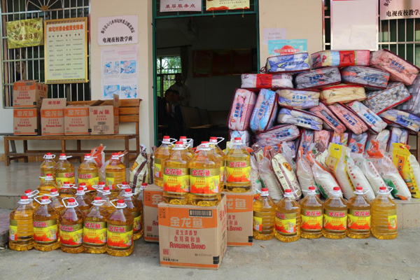 (現(xiàn)場(chǎng)發(fā)放愛(ài)心扶貧物資)