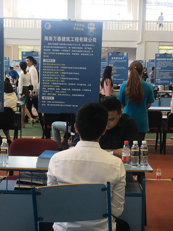 為積極響應相關(guān)就業(yè)政策,減輕社會就業(yè)壓力,履行企業(yè)社會責任,為眾多應屆畢業(yè)生提供前景廣闊的就業(yè)崗位,同時,落實推進公司人才建設(shè)計劃,配合公司發(fā)展戰(zhàn)略目標,進一步強化人才隊伍建設(shè),搭建起企業(yè)招賢引才的開放平臺,11月3日下午,海南萬泰指派行政人事部相關(guān)人員前往桂林洋高校區(qū),參加在??诮?jīng)濟學院舉辦的大型校園招聘會。