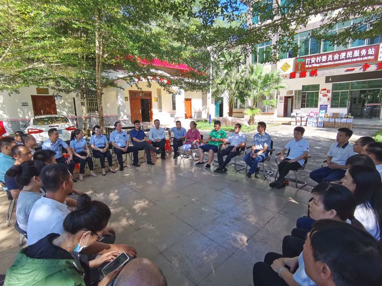 上午,陳雷局長等領(lǐng)導(dǎo)帶領(lǐng)大家一同走訪參觀了打安村的村容村貌、特色產(chǎn)業(yè)、房屋建筑和群眾生產(chǎn)生活等情況。隨后,在打安村村委會(huì)召開了交流座談會(huì),駐村第一書記陳光明向各位領(lǐng)導(dǎo)匯報(bào)了打安村鄉(xiāng)村振興工作開展情況,介紹了當(dāng)前工作隊(duì)的主要任務(wù)是鞏固脫貧攻堅(jiān)成果,提出了需要協(xié)調(diào)解決的問題,并說明了下一步打安村的工作目標(biāo)。