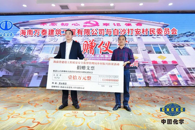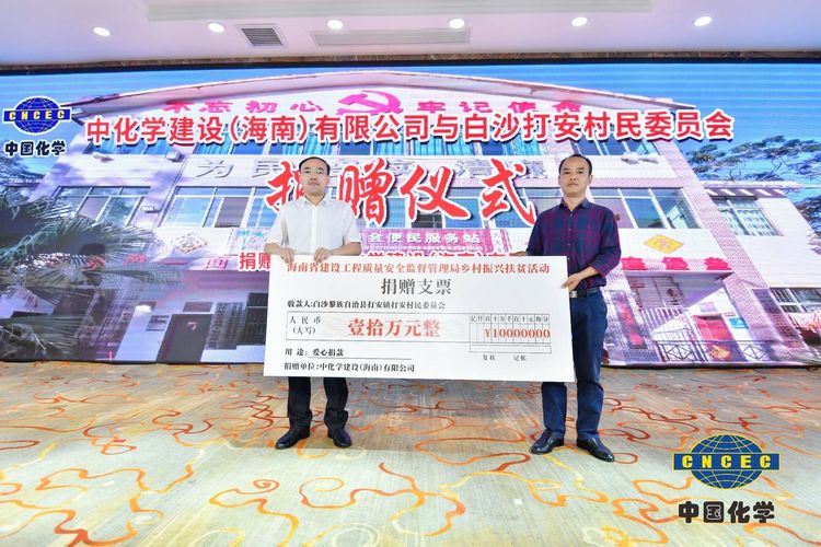 在捐贈儀式環(huán)節(jié),中化學(xué)建設(shè)(海南)有限公司董事長姚輝國、總經(jīng)理張小龍和海南萬泰建筑工程有限公司常務(wù)副總經(jīng)理顏利共同為白沙縣打安村捐贈20萬元,體現(xiàn)了企業(yè)在發(fā)展的同時,不忘承擔(dān)社會責(zé)任,慷慨解囊,助力鄉(xiāng)村基礎(chǔ)設(shè)施建設(shè),改善民生問題,推動鄉(xiāng)村振興工作進(jìn)一步發(fā)展。