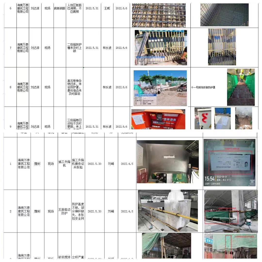 為落實(shí)海南省住建廳關(guān)于《海南省房屋市政工程安全生產(chǎn)治理行動(dòng)實(shí)施方案》以及“黨建引領(lǐng)促發(fā)展”2022年“安全生產(chǎn)月”活動(dòng)暨項(xiàng)目標(biāo)準(zhǔn)管理宣貫大會(huì)的有關(guān)要求,進(jìn)一步推動(dòng)項(xiàng)目安全生產(chǎn)工作做深做實(shí),履行安全生產(chǎn)監(jiān)管職責(zé),樹(shù)立安全生產(chǎn)發(fā)展理念,結(jié)合全國(guó)安全生產(chǎn)月活動(dòng),2022年5月20日至6月8日,海南萬(wàn)泰公司開(kāi)展2022年“安全生產(chǎn)月”各項(xiàng)目安全生產(chǎn)治理行動(dòng)。本次檢查小組由公司工程部人員組成,分別對(duì)海南省政務(wù)服務(wù)中心二期項(xiàng)目、海南省第三人民醫(yī)院項(xiàng)目、化藥生產(chǎn)及研發(fā)基地(二期)項(xiàng)目、佳元?七彩瀾灣南區(qū)商業(yè)、四季康城?水岸城邦、三亞國(guó)際傳媒中心項(xiàng)目二期等省內(nèi)26余個(gè)在建項(xiàng)目進(jìn)行系統(tǒng)、全面、徹底的檢查。