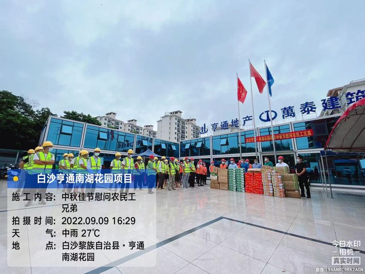 中秋慰問傳真情,濃濃關(guān)懷暖人心。為進一步推動農(nóng)民工權(quán)益保障工作做深做實,慰問馳援三亞歸來的抗疫“英雄”和項目一線工人,提升萬泰大家庭的凝聚力、向心力,2022年9月9日,在中秋佳節(jié)來臨之際以及白沙縣工會的支持下,海南萬泰建筑工程有限公司聯(lián)合白沙亨通房地產(chǎn)開發(fā)有限公司在亨通·南湖花園項目部開展了慰問一線工人主題活動,為工友們送去中秋月餅、米油、消暑茶等慰問品。白沙亨通地產(chǎn)董事長周金華、項目總監(jiān)劉普、財務(wù)總監(jiān)何承中,萬泰公司工程部部長侯領(lǐng)、項目執(zhí)行經(jīng)理祁冀等人參加本次活動。