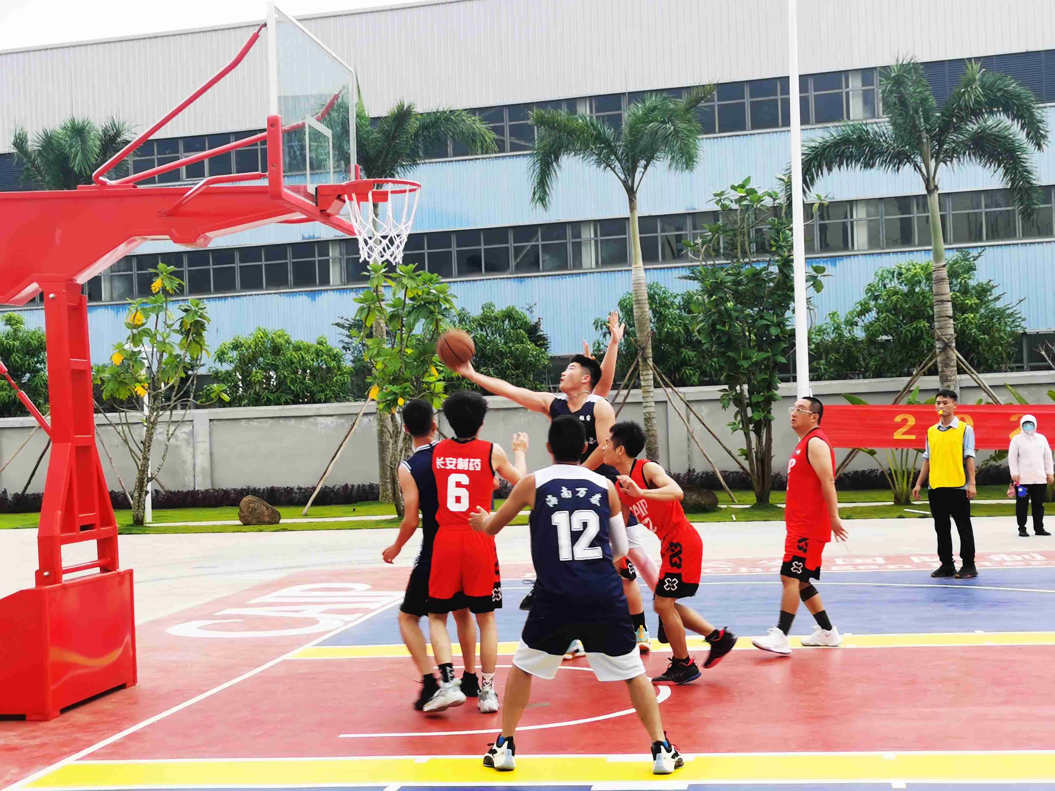 文體活動(dòng)凝心聚力,籃球大賽點(diǎn)燃激情。為豐富員工業(yè)余精神文化生活,樹(shù)立全民健身,自強(qiáng)不息的理念,2022年11月28日,萬(wàn)泰公司與所承建項(xiàng)目建設(shè)方——海南長(zhǎng)安國(guó)際制藥有限公司聯(lián)合舉辦籃球友誼賽,雙方都組織了優(yōu)秀代表隊(duì)參賽。貴州益佰制藥股份有限公司副總經(jīng)理、海南長(zhǎng)安國(guó)際制藥有限公司總經(jīng)理汪立冬等一行,萬(wàn)泰公司工會(huì)主席顏利率隊(duì)參加本次活動(dòng)。