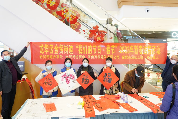 下午,海南萬泰公司參加了由轄區(qū)金貿(mào)街道工委、金貿(mào)街道商會等單位在友誼·陽光城一樓舉辦的2023年新春送?;顒?。面對廣大居民群眾的期待,書法家們鋪紙、沾墨、起筆、落筆,一起一落行云流水,一撇一捺龍蛇騰躍,在紅彤彤的紙上揮毫潑墨,洋洋灑灑地寫下一個個飽含新春祝福的“?!弊?、一副副對仗工整,寓意美好的春聯(lián)、一張張栩栩如生的花鳥畫,以免費贈予的形式,向大家送上了兔年祝福,活動現(xiàn)場到處洋溢著新春的氣氛。