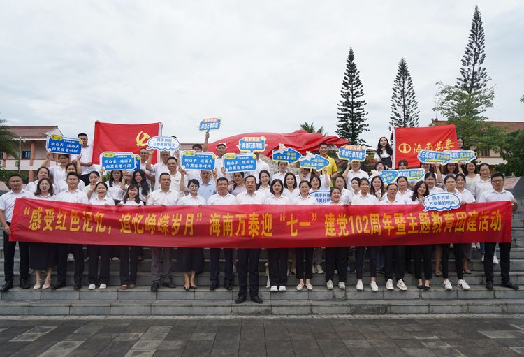 盛夏六月,驕陽似火,黨旗飄揚,同歡共慶。為慶祝海南萬泰公司成立十二周年,迎接中國共產(chǎn)黨建黨102周年,開展好學(xué)習(xí)貫徹習(xí)近平新時代中國特色社會主義思想主題教育,深入領(lǐng)悟和傳承紅色革命精神,提升團隊凝聚力和向心力,2023年6月16日,海南萬泰組織開展了迎“七一”、慶祝公司成立十二周年慶典暨主題教育黨建活動。公司員工約70余人參加了本次活動。