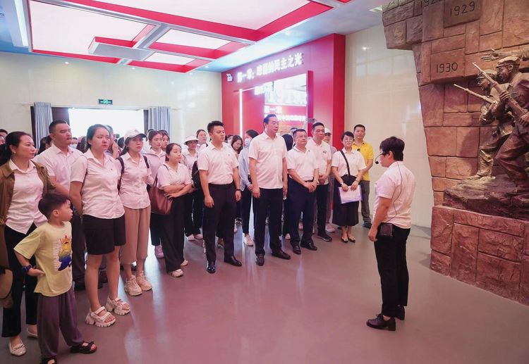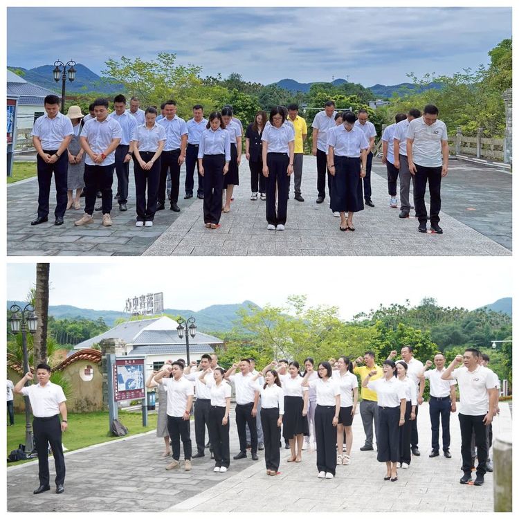 活動第一站來到了定安縣母瑞山革命根據(jù)地紀(jì)念園。大家首先參觀了革命歷史博物館,一張張革命的照片展現(xiàn)了母瑞山紅軍革命奮斗史,一件件無聲的遺物令人夢回曾經(jīng)革命時代。通過認(rèn)真聆聽博物館講解員的娓娓道來,生動形象的講述,大家深入了解了母瑞山革命根據(jù)地的發(fā)展歷程,這個地方曾在瓊崖人民堅持武裝斗爭二十三年紅旗不倒光輝歷程中起到了舉足輕重的作用,凝結(jié)著“崇高理想、堅定信念,勇于獻身,相信群眾、依靠群眾,自力更生、艱苦奮斗”的母瑞山精神,對那段艱苦卓絕的歲月有了新的認(rèn)識和領(lǐng)悟。隨后,黨員們懷著對革命烈士崇敬的心情,在王文明、馮白駒的銅像前為革命先輩默哀一分鐘和三鞠躬,并重溫了入黨誓詞。