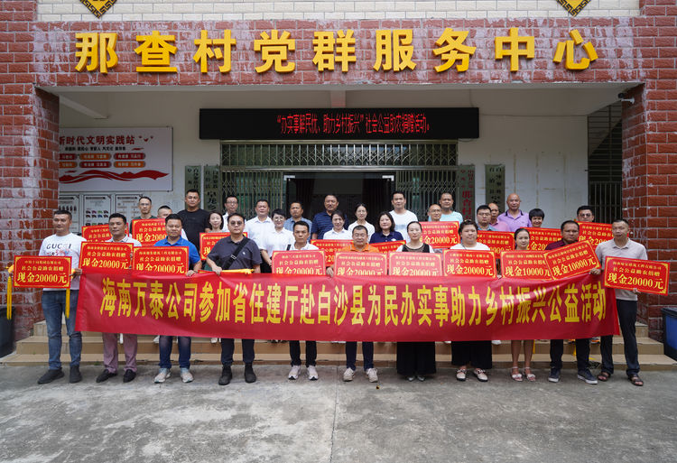 為進(jìn)一步助力鄉(xiāng)村振興工作,為民辦實事、解民憂,充分發(fā)揮企業(yè)的奉獻(xiàn)力量,助力海南自貿(mào)港建設(shè),2023年8月28日,海南萬泰公司參加了由省住建廳赴白沙縣阜龍鄉(xiāng)那查村舉辦的“辦實事解民憂,助力鄉(xiāng)村振興”公益活動。省住建廳科技處、辦公室、招標(biāo)辦,白沙縣住建局,省建設(shè)人力資源管理協(xié)會,省智能建造協(xié)會等有關(guān)領(lǐng)導(dǎo)以及海南萬泰建筑工程有限公司等多家企業(yè)共同參加本次活動。
