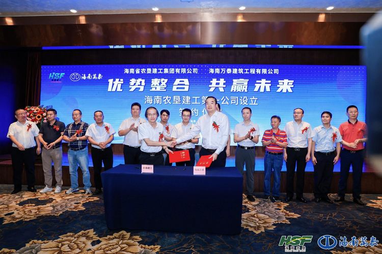 為致力于加大建筑產(chǎn)業(yè)創(chuàng)新孵化,推進(jìn)建筑業(yè)轉(zhuǎn)型升級(jí),高質(zhì)量高標(biāo)準(zhǔn)助力海南自貿(mào)港建設(shè),2023年9月12日,海南萬泰建筑工程有限公司與海南省農(nóng)墾建工集團(tuán)有限公司正式達(dá)成合作共識(shí),合資設(shè)立“海南農(nóng)墾建工第一公司”,雙方簽約儀式在??谟e館圓滿舉行,預(yù)示著全新的“農(nóng)墾建工一號(hào)”在海南自貿(mào)港將揚(yáng)帆起航。