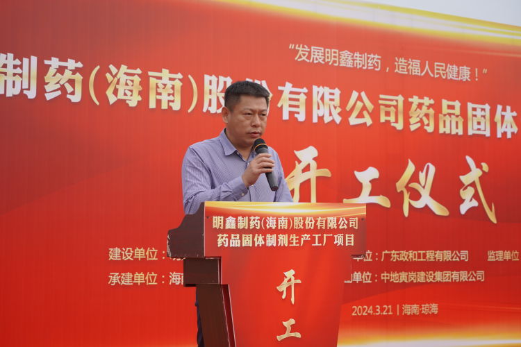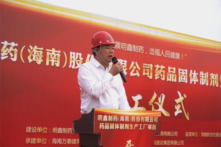 明鑫制藥海南公司董事長金佳樂在致辭中表示該項目建成后將進一步提升瓊海市醫(yī)藥服務水平,希望各參建單位都能夠齊心協(xié)力推進項目建設,高標準、高質(zhì)量完成既定施工任務,助力海南自貿(mào)港發(fā)展。