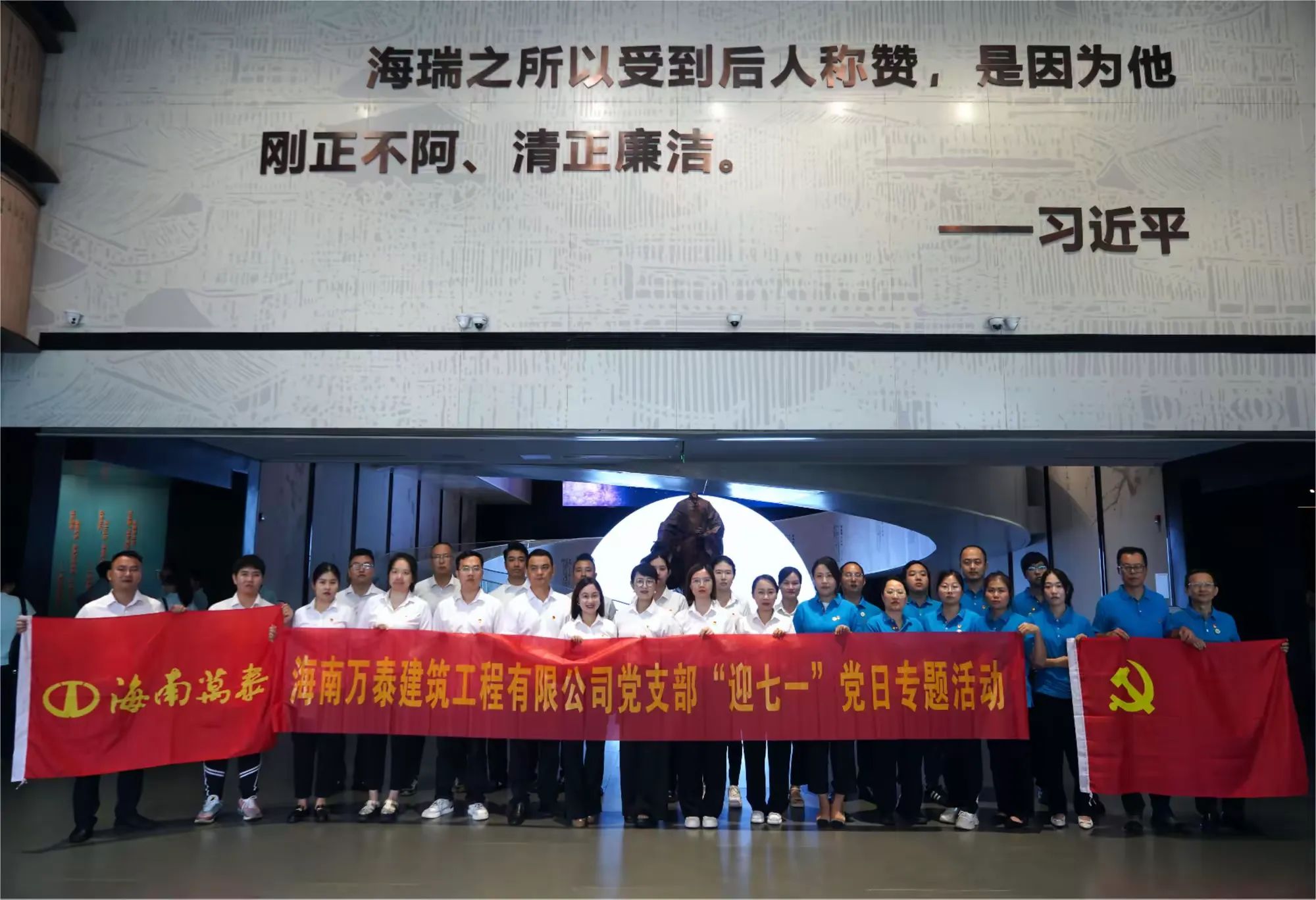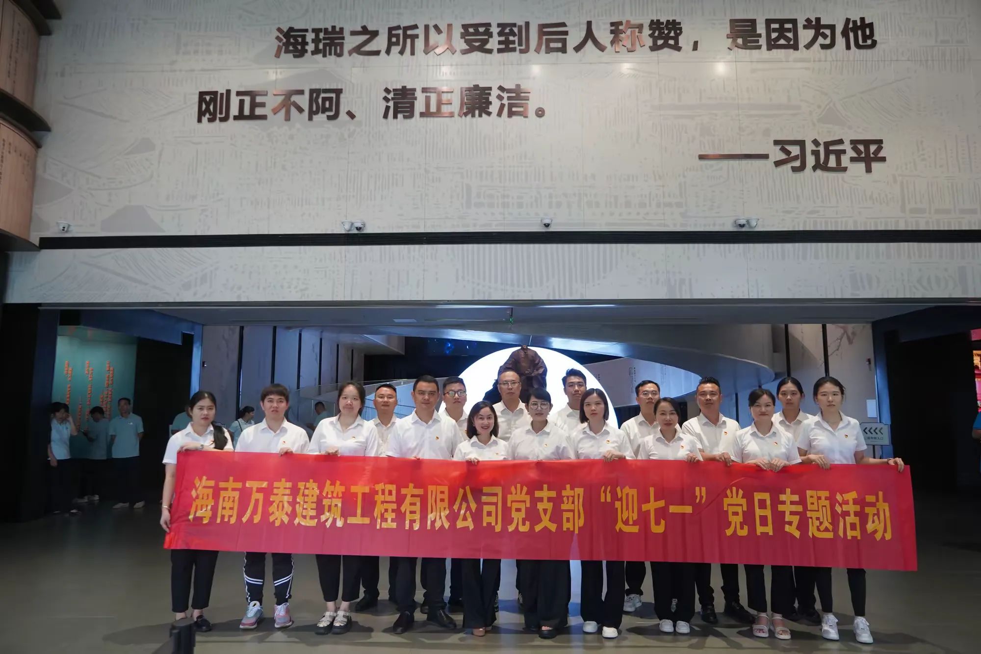 在參觀海瑞歷史文化展覽館的過(guò)程中,大家通過(guò)聆聽講解、觀摩實(shí)物及生平復(fù)原場(chǎng)景等形式,全面了解了海瑞的生平事跡和為官之道。海瑞的清廉正直、為民請(qǐng)命的精神深深打動(dòng)了在場(chǎng)的每一個(gè)人。在場(chǎng)的人紛紛表示,要以海瑞為榜樣,時(shí)刻保持清醒的頭腦,堅(jiān)守廉潔自律的底線,做到公私分明、清正廉潔。隨后全體人員還進(jìn)行了入黨宣誓,在錚錚誓言中表達(dá)堅(jiān)定不移聽黨話、跟黨走,為共產(chǎn)主義奮斗終身的信念和決心。