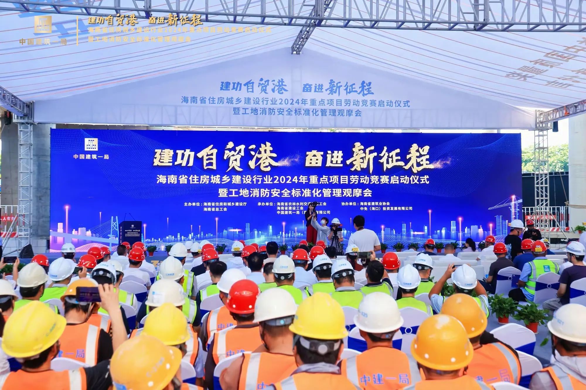 為深入學習貫徹習近平新時代中國特色社會主義思想和黨的二十大精神,貫徹落實習近平總書記關于工人階級和工會工作的重要論述,大力弘揚勞模精神、勞動精神、工匠精神。2024年7月10日,由海南省住房和城鄉(xiāng)建設廳、海南省總工會主辦,海南省農林水利交通建設工會、海南省建設工會、中建一局承辦的“建功自貿港、奮進新征程”海南省住房城鄉(xiāng)建設行業(yè)2024年重點項目勞動競賽啟動儀式暨工地消防安全標準化管理觀摩會在海口國際免稅城項目工地啟動,省住建廳黨組成員、副廳長劉聯(lián)偉,省總工會黨組成員、副主席陳樺,省住建廳總工程師孫淑華等相關單位領導出席活動。海南萬泰公司黨支部、工會參加了本次活動。