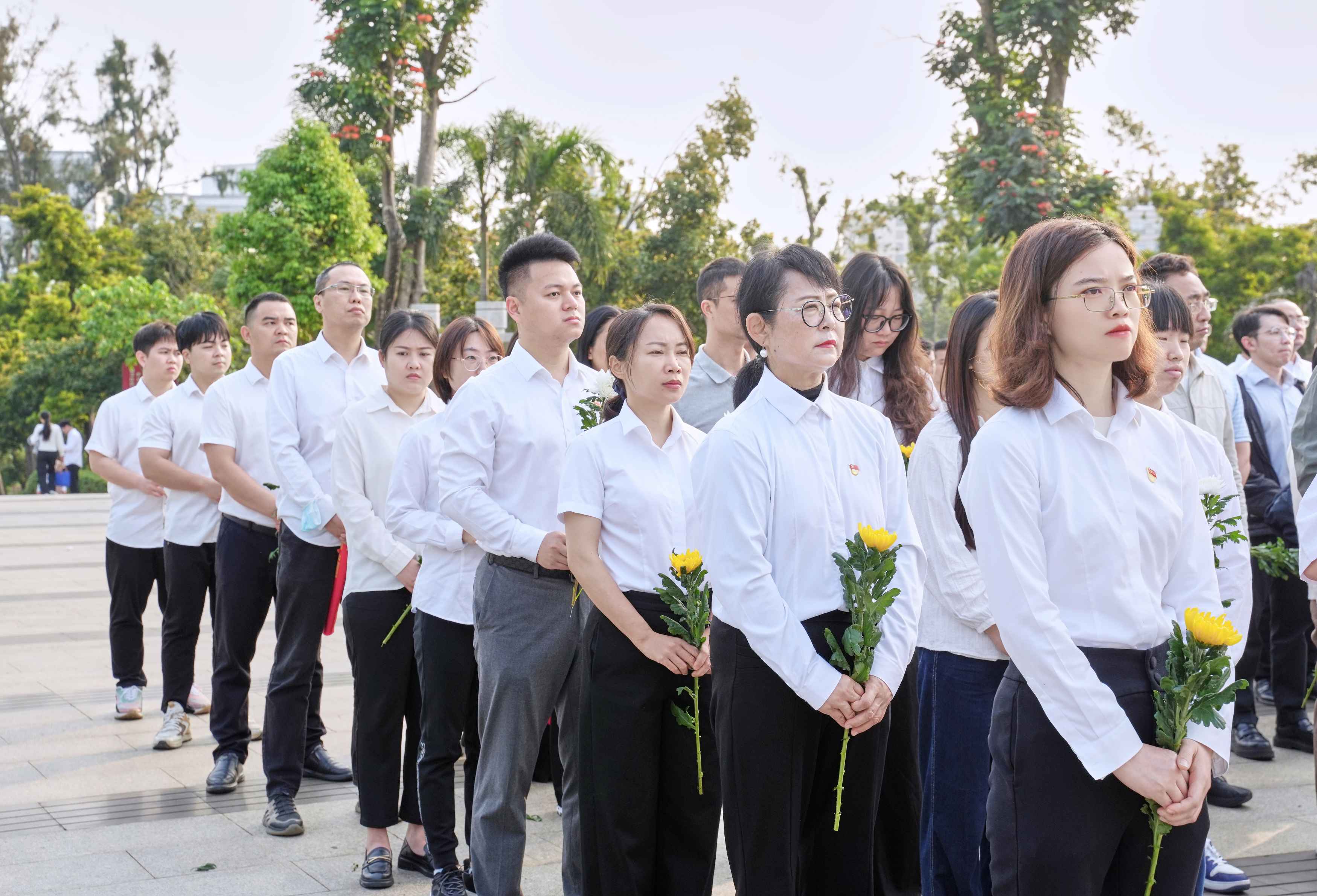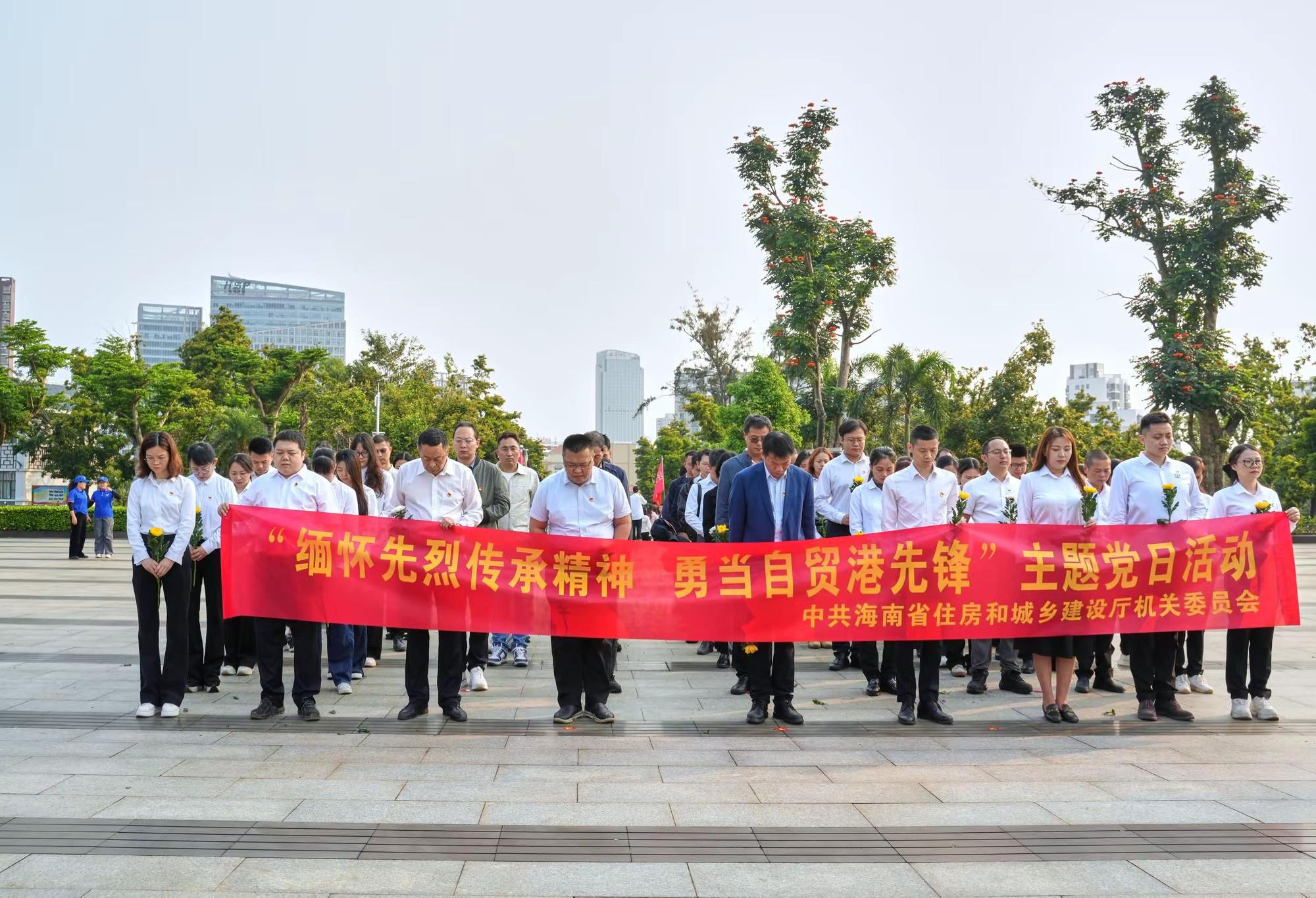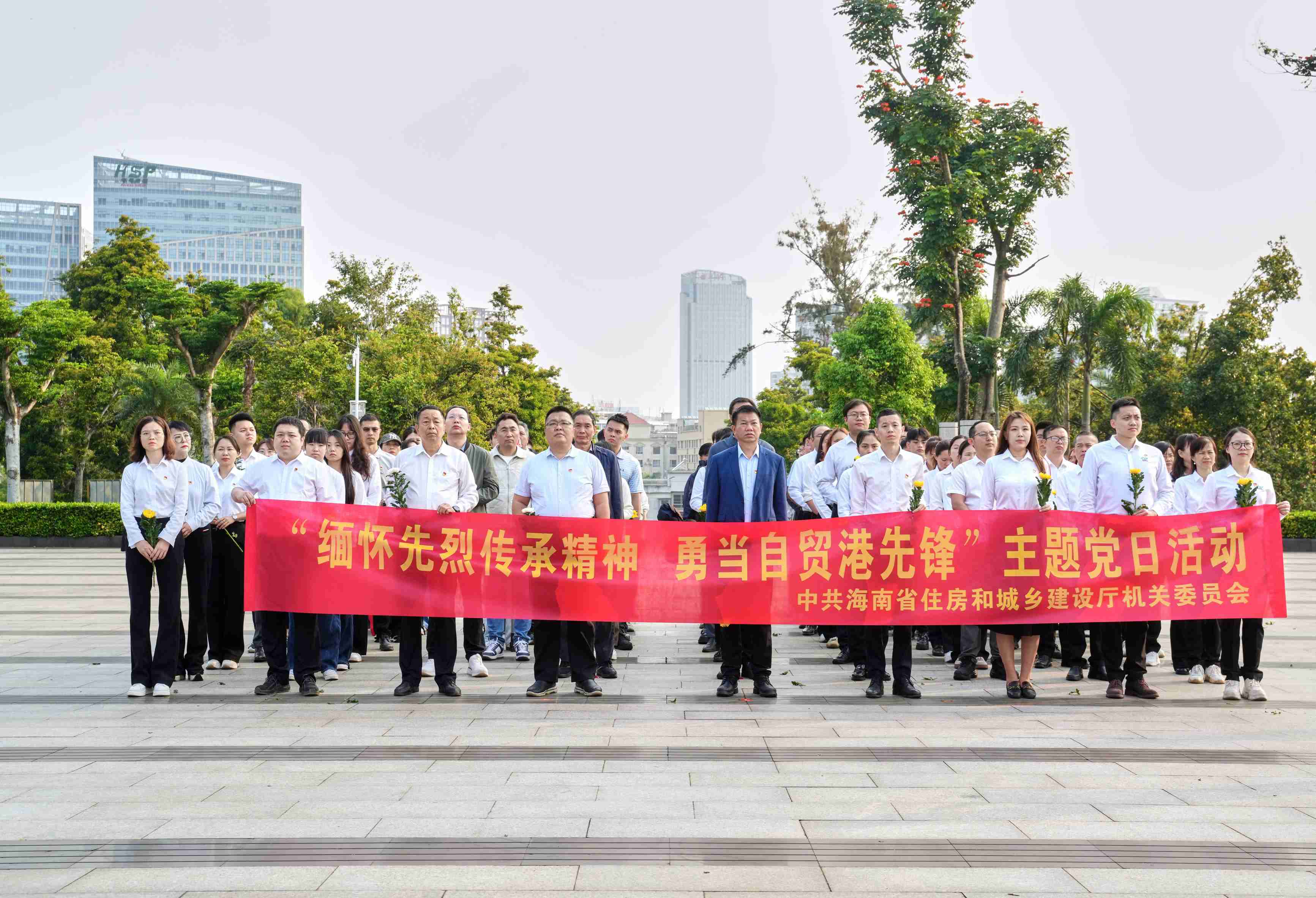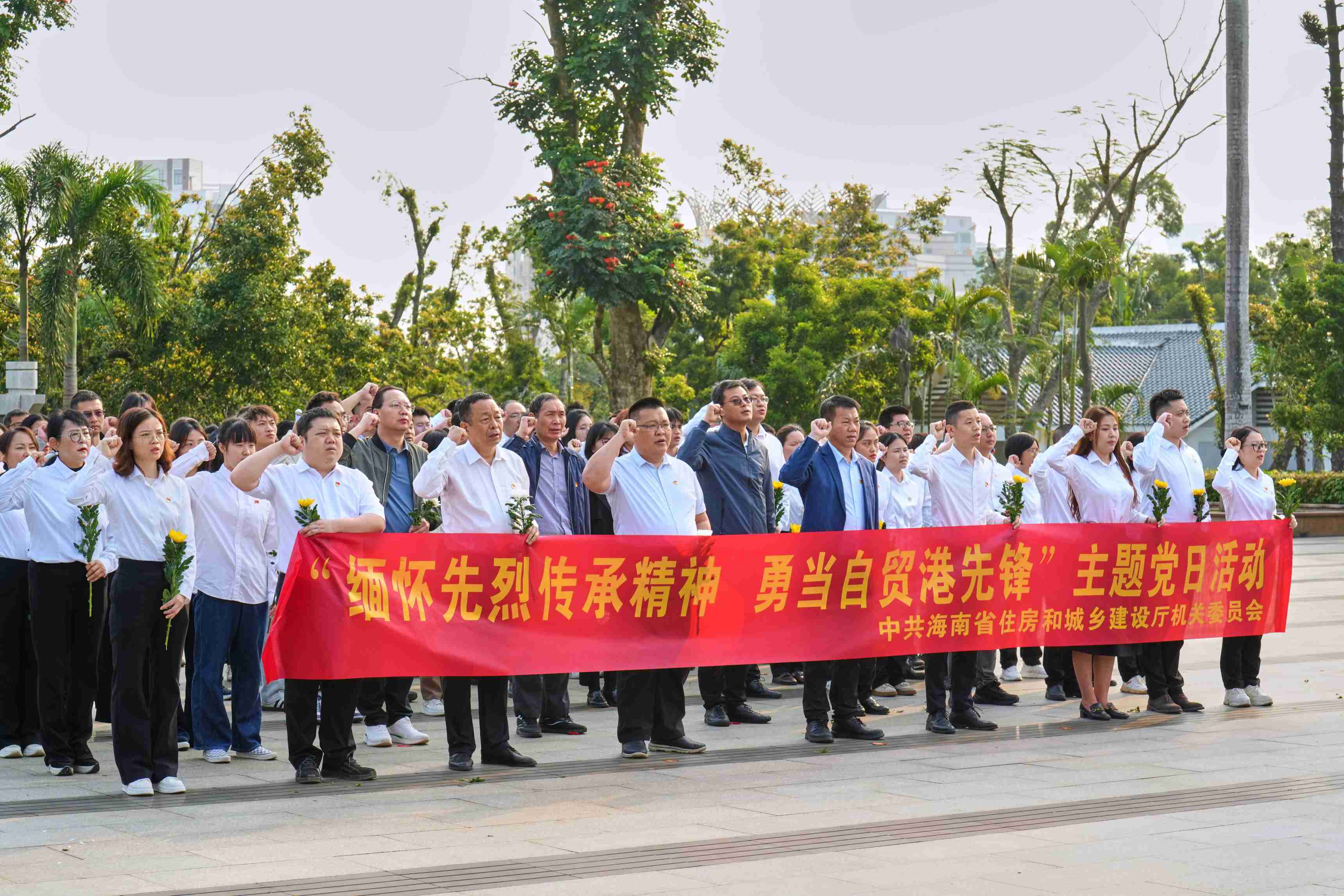 上午8時,來自省住建廳相關(guān)處室以及建筑行業(yè)相關(guān)基層黨組織,共90余名黨員、入黨積極分子齊聚??谑薪夥藕D蠉u戰(zhàn)役烈士陵園。大家身著統(tǒng)一淺色上衣、深色下裝,佩戴黨徽,整齊列隊,在莊嚴(yán)肅穆的烈士紀(jì)念碑前肅立。