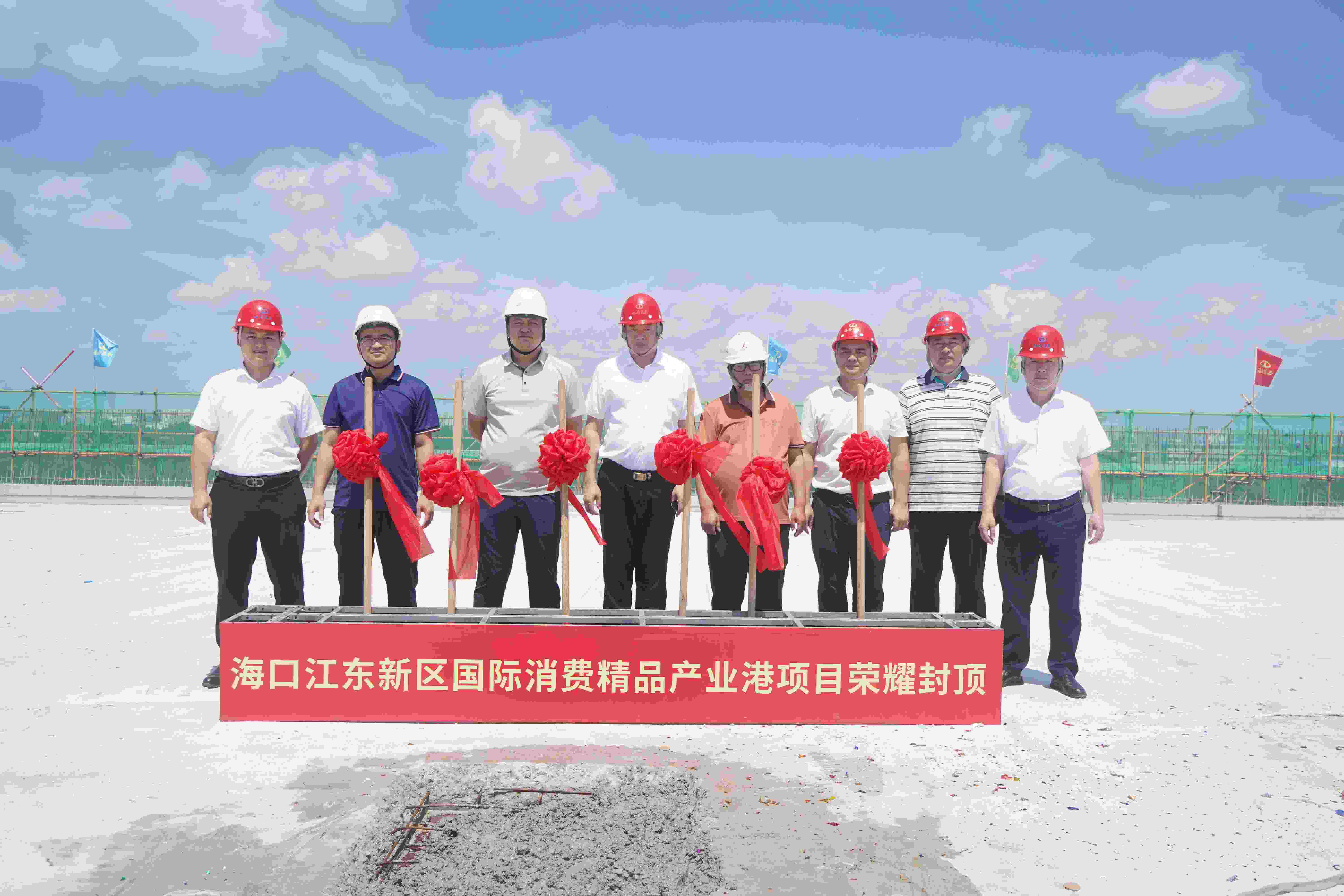 5月19日,??诮瓥|新區(qū)國際消費精品產(chǎn)業(yè)港項目主體結(jié)構(gòu)封頂儀式在項目現(xiàn)場順利舉辦。海南萬泰公司總經(jīng)理顏利、有關(guān)部門負責(zé)人以及項目部人員,項目各參建單位代表出席了封頂儀式。