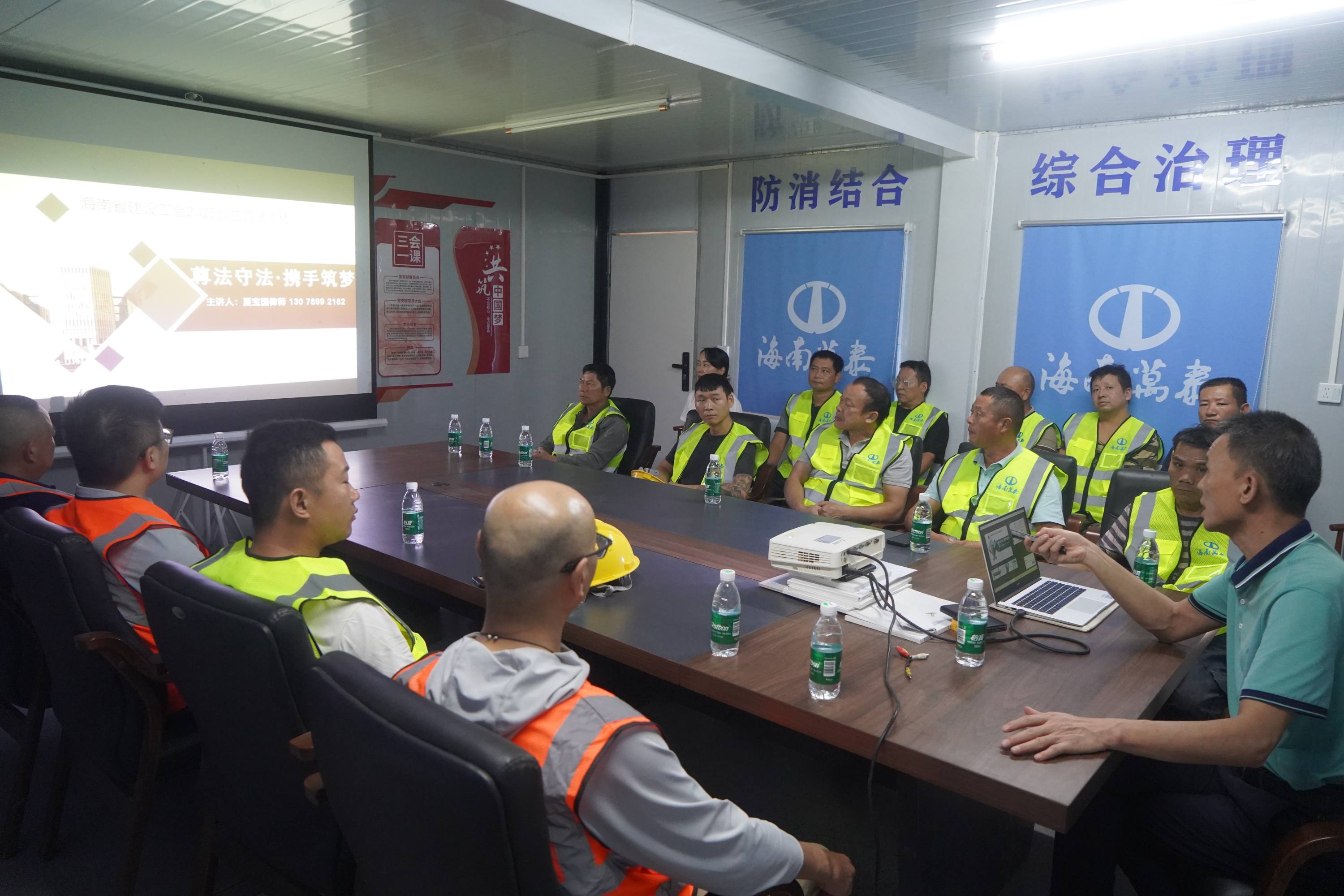 為進(jìn)一步做好普法宣傳工作,增強(qiáng)基層職工的維權(quán)意識(shí),10月20日下午,由海南省建設(shè)工會(huì)主辦的“送法律講座進(jìn)企業(yè)進(jìn)工地”活動(dòng)走進(jìn)海南萬泰建筑工程有限公司承建的江東新區(qū)國際消費(fèi)精品產(chǎn)業(yè)港項(xiàng)目工地現(xiàn)場。近20名項(xiàng)目管理人員及工人代表參與此次普法課堂,活動(dòng)旨在強(qiáng)化基層職工法律意識(shí)與維權(quán)能力。