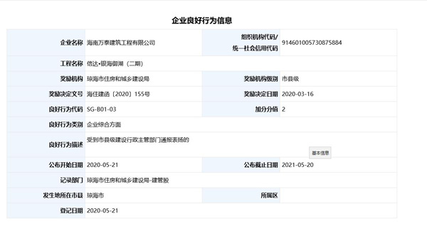 海南萬(wàn)泰公司兩項(xiàng)目獲市縣住建系統(tǒng)通報(bào)表?yè)P(yáng)和誠(chéng)信激勵(lì)加分