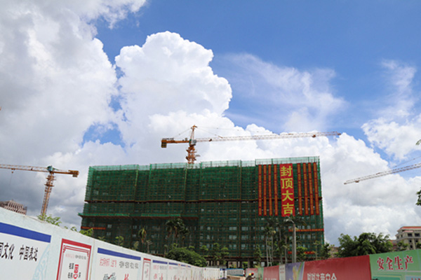 自今年二月份瓊?!靶胚_?銀海御湖(一期)”項目開工以來,海南萬泰施工團隊不畏艱辛,克服海南高溫多雨的氣候特點,保質(zhì)、保量,緊張施工,嚴格把控項目的各個施工細節(jié),“信達?銀海御湖(一期)”項目9#樓率先完成主體封頂。