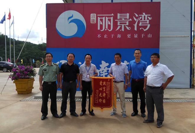 2017年4月25日上午,海南省紀(jì)委扶貧工作隊(duì)隊(duì)長(zhǎng)勞文、省紀(jì)委駐毛道村第一書記李朝、五指山市毛道鄉(xiāng)武裝部部長(zhǎng)胡國(guó)萬一起將一面書有“扶貧濟(jì)困、愛心無價(jià)”的錦旗送到海南萬泰清能麗景灣項(xiàng)目部,感謝五指山清能置業(yè)有限公司、海南萬泰建筑工程有限公司對(duì)五指山毛道鄉(xiāng)貧困戶危房改造工作的大力支持。